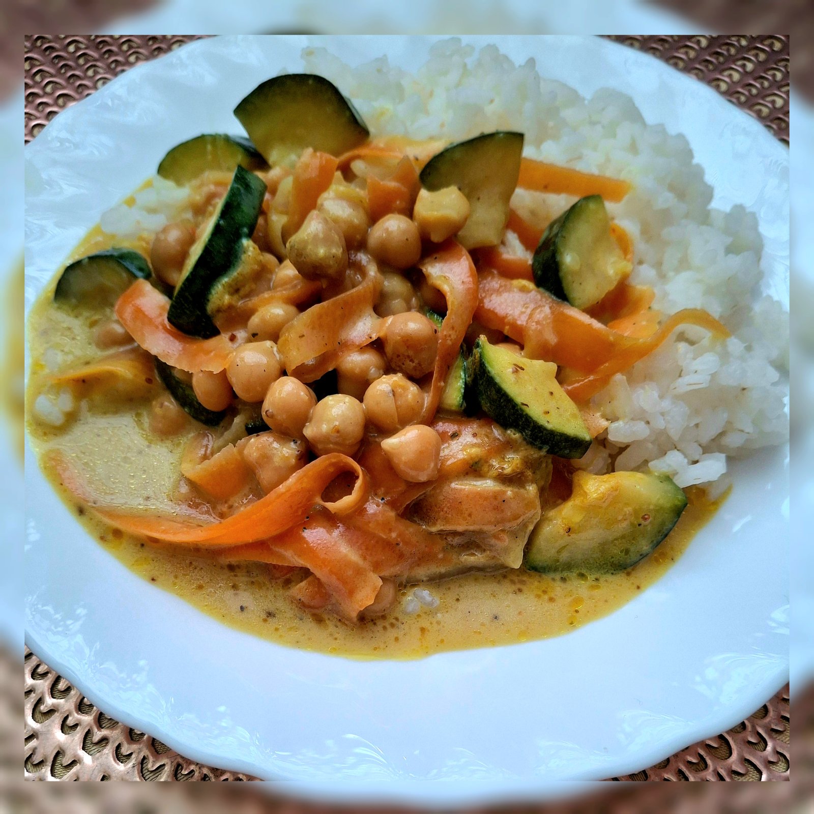 Cicerove kari s cuketou,mrkvou,kari,kurkumou a kokosovym mliekom