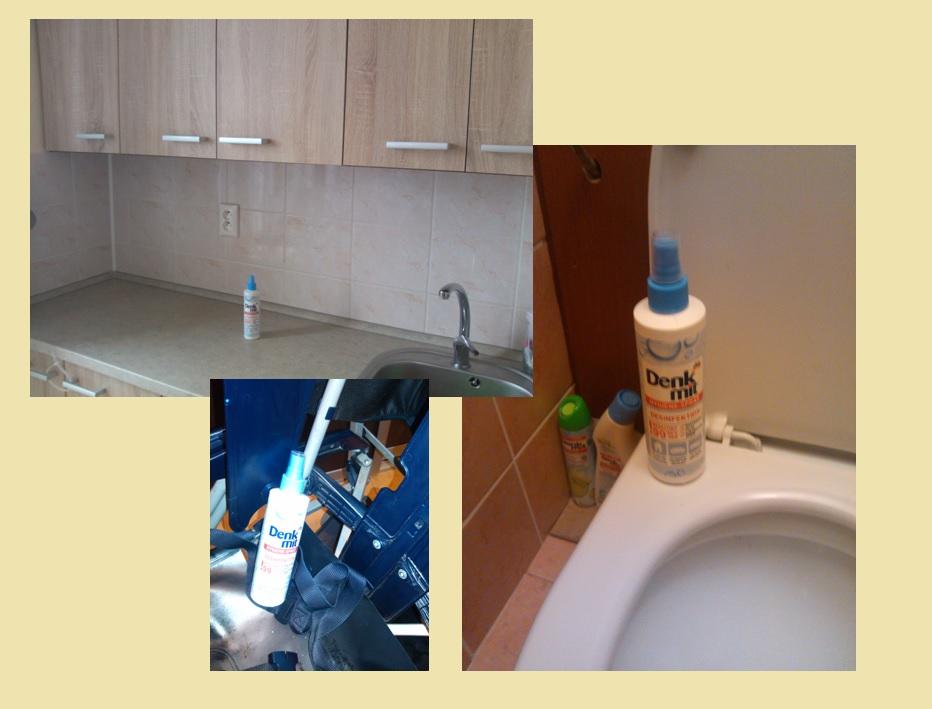 Všade dobre doma najlepšie, hlavne s týmto sprejom. Už neoceniteľná súčasť našej domácnosti. Hneď som sa vrhla, na čo som len mohla, pracovná doska v kuchyni, WC, kočík, ale ten som troška prešla aj s vlhkou handričkou. Odporúčam, odporúčam.