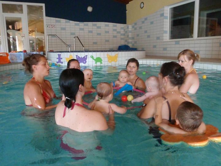 Milí rodičia! Plávanie je veselá hra detí a rodičov,ktorá pomáha v psychomotorickom vývoji.Rozvíja rovnováhu a orientačné schopnosti nad i pod vodnou hladinou.Deti si zvykajú na kolektív detí v rovnakom veku,sú pohybovo zdatnejšie a otužilejšie.Kurzy sú určené pre deti vo veku od 4 mesiacov do 3 rokov! Plávame vždy 2 krát týždenne. Hodina plávania pozostáva z troch častí plávania, saunovania, masáže. Každý rodič vstupuje do bazénu spolu so svojim dieťaťom. Všetky pohybové cvičenia sú predkladané hravou formou, prostredníctvom pesničiek a riekaniek.