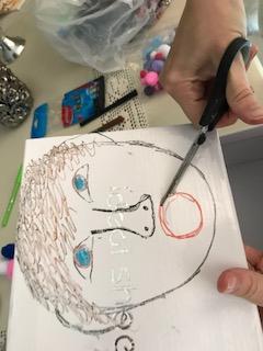 - Ústa budú predstavovať miesto pre vkladanie. Preto ich obkreslite podľa veľkosti pom pom guličky.