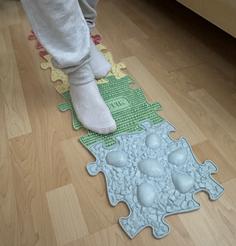 Deti sa po dennom cvičení prestriedajú na podložke a musím povedať že pri pravidelnom používaní vidím aj u dcérky zmenu.Nesťažuje si na bolesť klenby aj keď si obuje nevhodnú obuv.Najradšej má ružový-pichlavý dielik a syn zas modrý.