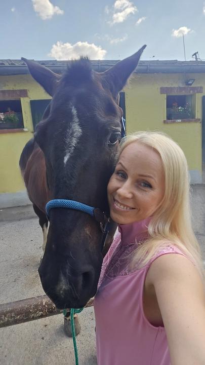 Kuli - mladucky konik, novy "prirastok" do klubu. Prvy krat som ho jazdila pred mesiacom (bol tam tri dni). Prisiel westernovo prijazdeny a ta jazda pre mna bola dost narocna 🤭. Teraz po mesiaci som si opat na neho sadla a co s nim Serif (majitel, trener) za ten mesiac "urobil" je nieco neskutocne. Prijazdeny na konske polo, jemnucko reaguje na vsetky dotyky, pohyby, povely. Oproti prvej jazdy ta vcerajsia bola ako za odmenu 🥰 Sice prsalo, ale uzila som si to perfektne. Je to zlaticko, ako aj Black ️