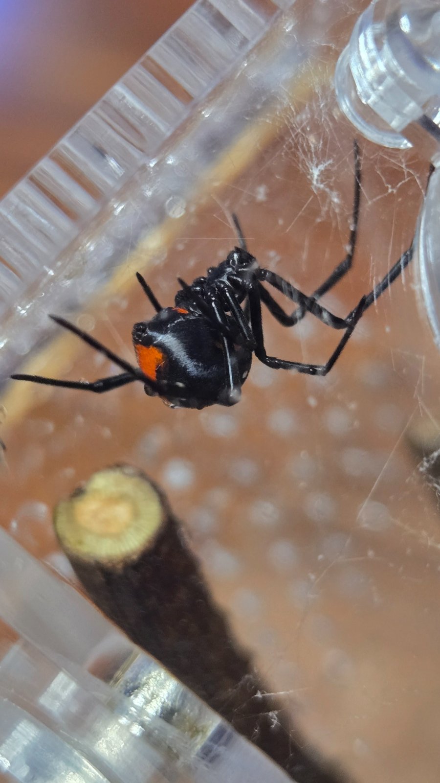 @brendaa je to akrylove terarium, dierky su tam kvoli vetraniu, cirkulacii vzduchu. Preto sa to aj zle foti, mobil si stale zaostruje vsetko ine, len nie pavuka 🙂 Ale z 200 fotiek vzdy vyjdu dve tri dobre 🙂