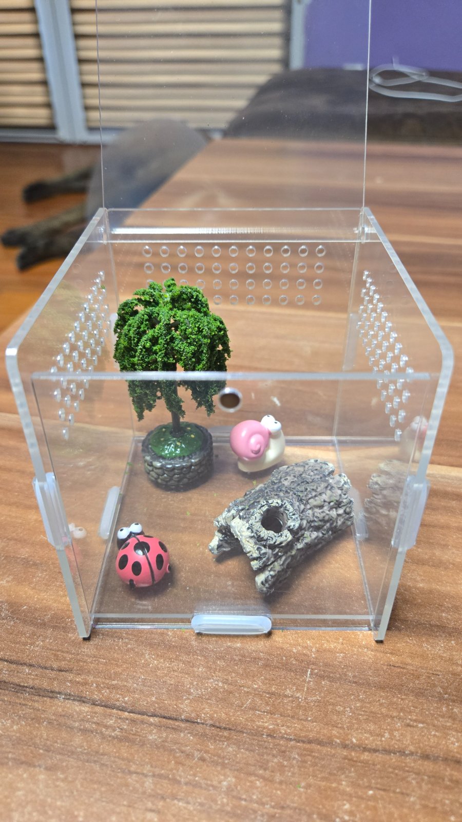 Lienka a slimacik, taktiez aj stromcek ci ta kora - to su vsetko dekoracie, ktore su pavukovi na dve veci 😀 mozno este ta kora ako ukryt. Ak ide o zemneho pavuka, ten si aj tak vyhrabe svoju dieru tam kde chce. Do terarka este pojde lignocel - to je nieco ako hlina, cize bude mat do coho dieru urobit. Ostatne je pre mna, aby som mala pocit estetickeho vyzitia 😀 i ked predpokladam, ze pavucica si to nakoniec aj tak sama "uprace a upravi" 😀 😀 😀 v podstate ano, je to blbost a uplna zbytocnost.