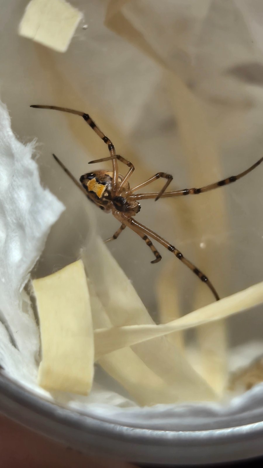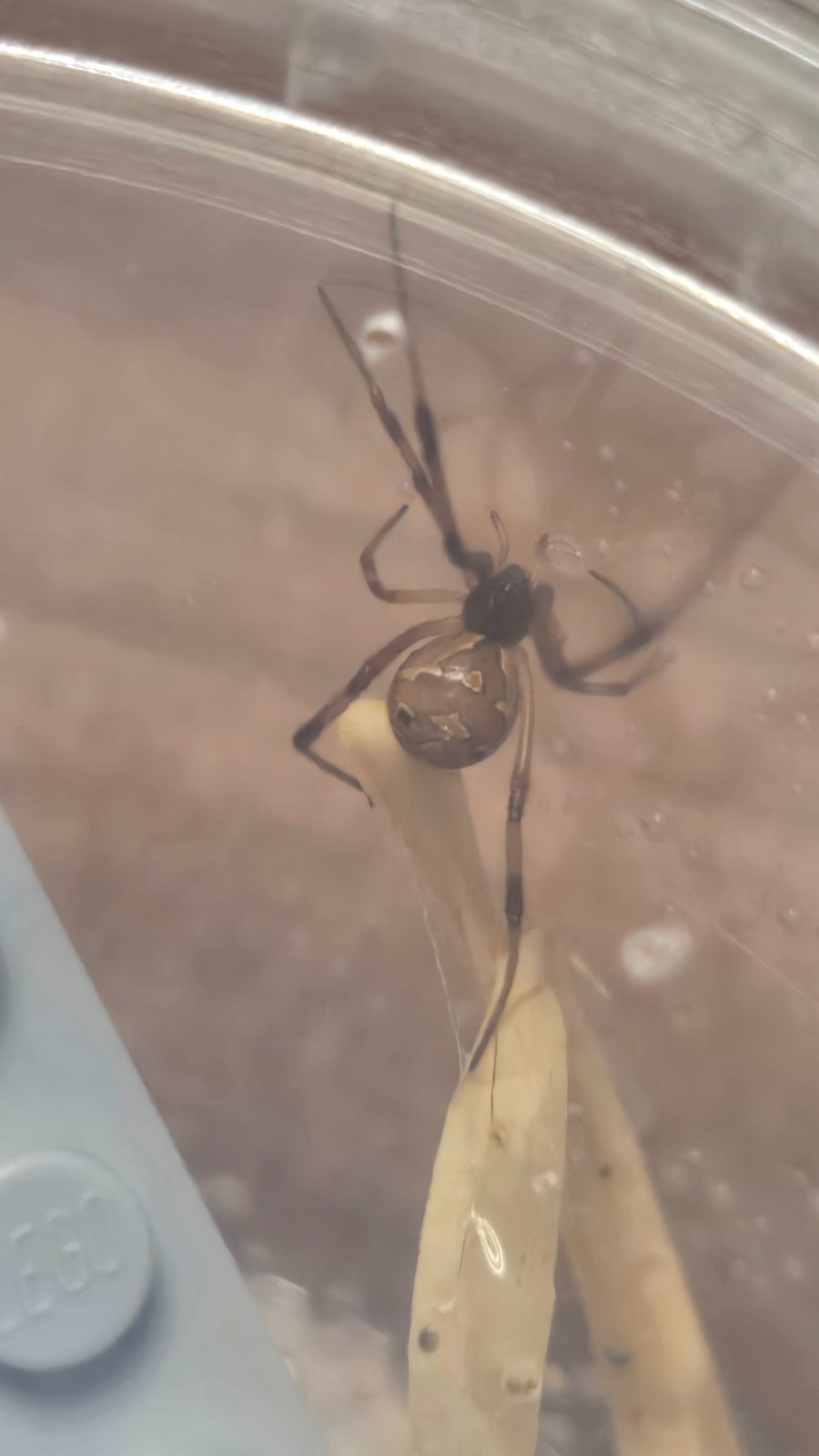 No a potom su tu drobatka - tiez latrodectus hesperus - necakany prirastok. Neviem pohlavie a nemam ani mena. Tie este chvilku na meno pockaju. Ale vsimnite si - porovnanie s legom - ony su drobnejsie ako spendlikova hlavicka 🥰😍❤️