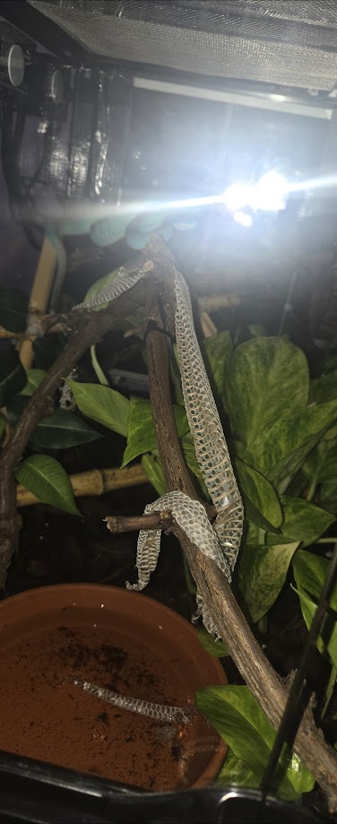 @susminka zvlecena koza je vzdy priesvitna, farba - ak sa to tak da nazvat - je rozdielna. Tento zeleny necha taku nazltlu kozu. Co mam cierneho hada, ta koza je taka sedkasta. Po koralkovke ostavaju pasy, ale len jemne viditelne, koza je nasedla. Po pytonke ostava skor v hnedastom odtieni. Kratko po zvleku je vlhka, jemna, ked vyschne uz je to take skor ako mikrotenovy sacok.