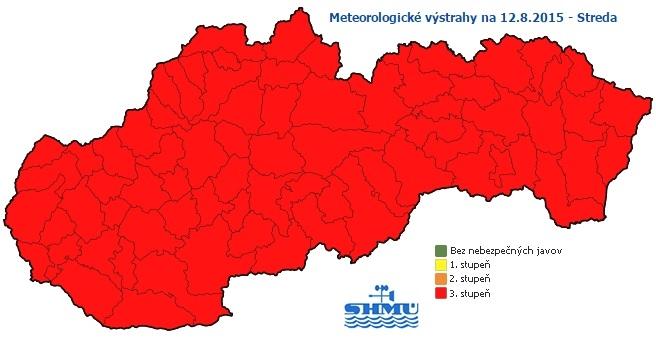 Druhý stupeň výstrahy platí najmä pre severnú časť západného, stredného a východného Slovenska. Meteorológovia tu očakávajú dosiahnutie maximálnej teploty vzduchu 32 až 35 stupňov Celzia. Tretí stupeň výstrahy platí predovšetkým pre južnejšie regióny Slovenska. SHMÚ tu predpokladá dosiahnutie maximálnej teploty vzduchu 36 až 38 stupňov Celzia.