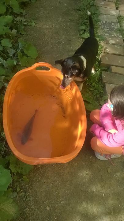 ...v nedelu sa mi skoro pes upil k smrti... chcel chytit karasa tak, ze vypije celu vodu 🙂 🙂 🙂