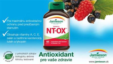 Oxidatívny stres a následné poškodenie organizmu voľnými radikálmi sú považované za základné faktory vyvolávajúce civilizačné ochorenia, ako sú kardio-vaskulárne ochorenia, rakovina, neurovegetatívne problémy. Super antioxidant Jamieson NTOX poskytuje maximálnu antioxidačnú ochranu pred predčasným starnutím. Obsahuje vitamíny A, C, E, selén a rastlinné karotenoidy luteín a lykopén, ktoré spolu s antioxidačnou ochranou podporujú aj zdravie očí a prostaty.
