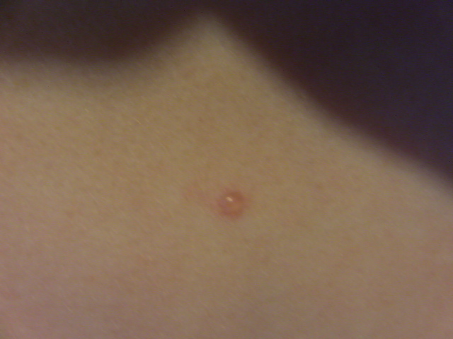 tato vyrazka bola vcera vecer pidi mini ruzova bodka na ktorej som si vsimla malinky hrbolcek a v nom tekutinku, ale len preto lebo uz som vedela co hladat a dnes rano je 3x taka velka