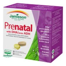Jamieson Prenatal s omega-3 DHA multivitamín obsahuje kompletnú zmes 13 vitamínov, vrátane 1 000 μg kyseliny listovej, a taktiež 8 minerálov, vrátane 28 mg železa. Vyrába sa na prírodnej báze čerešne acerola, šípok a citrusových bioflavonoidov. Je obohatený o 400 IU vitamínu D3. Vitamín D je známy ako „slnečný vitamín“, ktorý pomáha v absorpcii vápnika, podporuje zdravé kosti, pokožku, zuby a je zvlášť dôležitý počas tehotenstva.