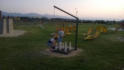 Bola som velmi prijemne prekvapena tymto miestom. Parkovanie zdarma, sluzba na parkovisku kt vas nasmeruje k volnemu miestu. Mala som obavy ked som videla preplnene parkovisko z natresku vo vnutri. Opak bol pravdou. Lehatka zdarma. Bomo ich dodtatocne vela. Standard naramky na kt si kupujete aj jedlo a napoje a platite az pri odchode platobnou kartou. Vela bazenov, vela toboganov na kt sa niekde xakalo viac niekne vobec. Chalani sa velmi vysabtili. Mne uzasne dobre spravili termalne teple bazeny... Balzam na moje telo. Voda v bazenoch tepla. Vo vnutri krasny areal. Odporuxam vazeby so slanou vodou. Zachody ciste. Serblik na damskych zachodoch. V arely je aj fun park s komotocmi - my sme ho zial nestihli.lebo sme si uzivali vidu. Jedine negativum vidim v cenach za jedlo 7€ dat za jedlo x 4 ...sa mi zdalo naotaj vela. V bufete stal hamburget 5€.. Inak vsetko super a maju skvely ani.acn team kt bavil ludi 💙