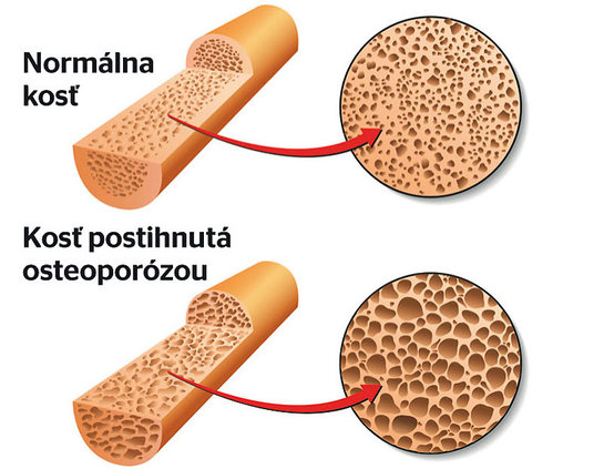 Ide o postupné, pomalé znižovanie hustoty a kvality kostí spôsobujúce oslabenie kostry a zvýšené riziko zlomenín, najmä v oblasti chrbtice, zápästia a stehnovej kosti. U niektorých chorých sa nemusí prejaviť žiadnymi ťažkosťami, no choroba napreduje. Prvým prejavom nezriedka býva až osteoporotická zlomenina, ktorá sa objaví náhle ako ,,blesk z jasného neba”, často aj po pôsobení nepatrného tlaku.K rozvoju osteoporózy môžu prispieť rôzne faktory. Literatúra uvádza, že z dvoch tretín je podmienená geneticky. Vrodenú záťaž však môžeme veľmi výrazne ovplyvniť. Ochorenie najčastejšie vzniká z nedostatku látok potrebných na stavbu kostí: vápnika, fosforu a vitamínu D. Veľké mínus je nedostatok pohybu: dochádza k narušeniu výživy kostí, bez opakovaného zaťažovania kostí pohybom nedôjde k udržaniu a k adekvátnej výstavbe kostnej hmoty.
