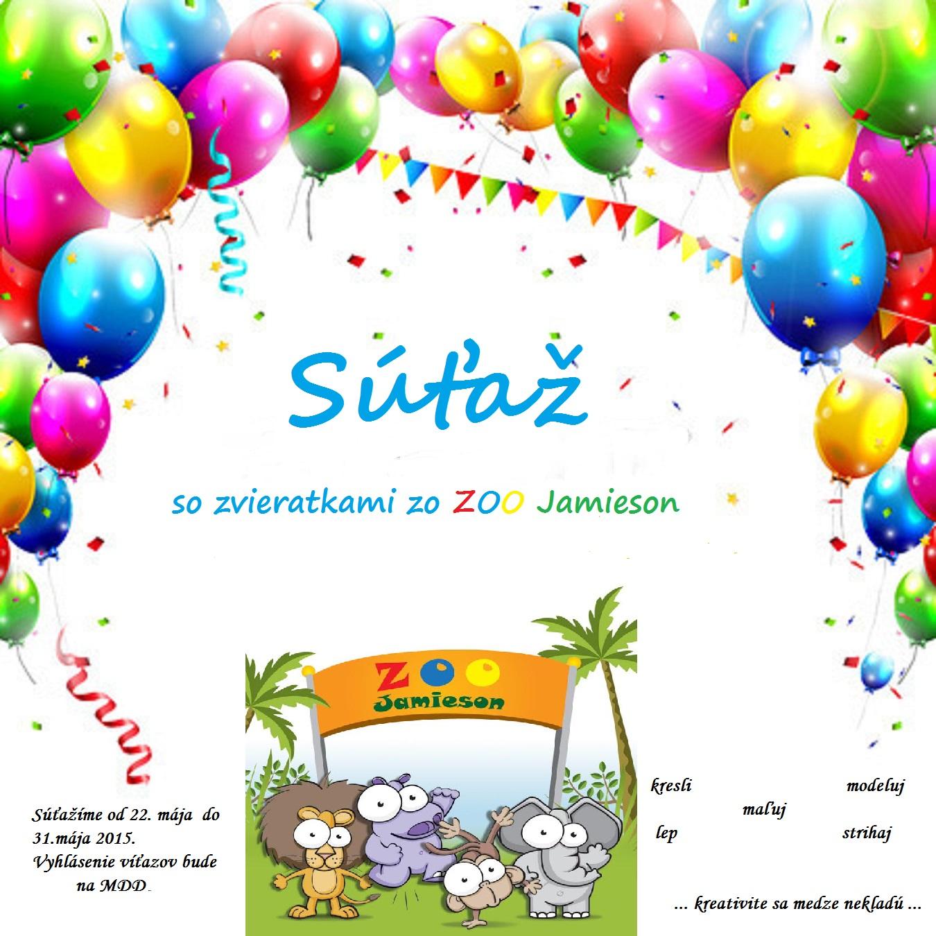 Vonku prší, ale aj tak sa dá ísť s deťmi do ZOO 🙂 Ako ? Jednoducho, nakreslite si zvieratká a zapojíte sa tak aj do súťaže o pekné ceny, ktoré potešia nielen Vás, ale aj Vášho drobca. Stačí nechať tvoriť Vaše dieťatko.... Podmienky súťaže: 1. Dieťatko má nakresliť, namaľovať, vymodelovať alebo inak stvárniť (kreativite sa medze nekladú) zvieratká zo ZOO Jamieson na obrázku – opicu, leva, hrocha, slona. 2. Odfotiť svojho drobca s jeho obrázkom (výtvorom), napísať jeho vek a zdieľať fotku na svojom blogu. 3. Označiť príspevok #jamieson #jamieson_sutaz_mdd . 4. Fotku pridať v termíne od 22.5.2015 do 31.5.2015 do 24:00 h. 5. Víťazné príspevky budú vyhlásené na MDD – 1.6.2015 v mojom blogu. 6. Každý príspevok bude odmenený ♥. Výhry sú: 1. Multivitamín Vita Vim Kids, plyšáčik elmex (pre dievčatko Elmy , pre chlapčeka Mexxy) a sprchový gélik Bübchen (rúžový alebo modrý). 2. Multivitamín Vita Vim Kids, sprchový gélik Bübchen (rúžový alebo modrý) a sada ceruziek. 3. Sprchový gélik Bübchen (rúžový alebo modrý) a sada ceruziek. Výhry si môžete prezrieť tu #jamieson_mdd #jamieson