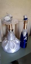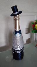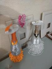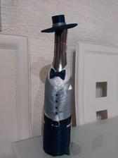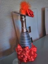 spodok som urobila z kartonu a navrh som nalepila alobalovú mištičku z čajovej sviečky všetko som obalila froté látkou zo starého svetra, dala som okolo stužku a pierko susedko aj so susedkou čumákovali akú"dôchodcovskú" fľašku som urobila aj s papučkami,musím to tu dať