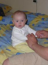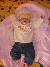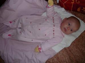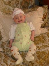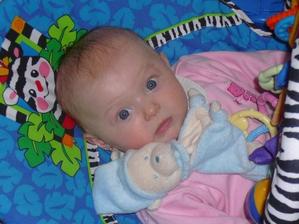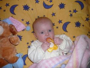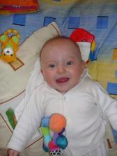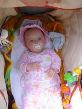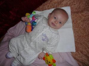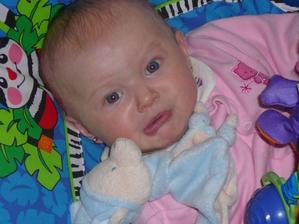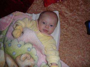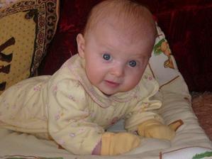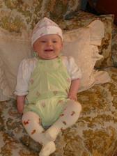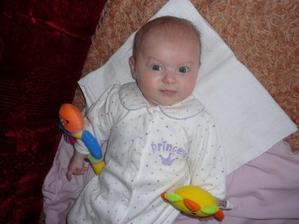 Cas pomaly plynie a nasa Laura rastie ako z vody. Momentalne ma 4 mesiace a 6200g a 65cm. Je velmi sikovna, rada si cucka prstiky a ochutnava vsetky hracky. Tak rada by sa uz posadila, uz ju nabavi stale len lezat a lezat, je velmi zvedava, vsetko by najradsej preskumala a to sa predsa v lezatej polohe neda...🙂 Ked ju posadime, tak krasne sedi, samozrejme ju este musime drzat.... Tak krasne sa smejka a vzorovo spinka, mame z nej naozaj radost. Vsak sa presvedce na fotkach sami...