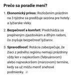 no aby to bolo spravodlivé, ja by som práveže bola za to, keby to rozdelili inak, lebo keď sa napr. do tatier nahrnie celý Bratislavský, nitriansky a trnavský kraj, tak sa tam nie je kde pohnúť, lepšie by bolo to pomiešať s východom, bolo by to lepšie aj pre hotely, nakoľko my chodíme týždeň pred všetkými prázdninami a keď sme sa pýtali, tak hotel na BA prázdniny beznádejne vypredaný a na prázdniny východu prázdny, nakoľko asi z popradu do tatier sa nepôjdu ubytovať, to isté aj inštruktori, keď som volala v decembri či treba dopredu zajednať, tak že pokiaľ nejdeme v čase prázdnin BA, tak je to pohoda, ak v ich čase, tak volám neskoro :D
