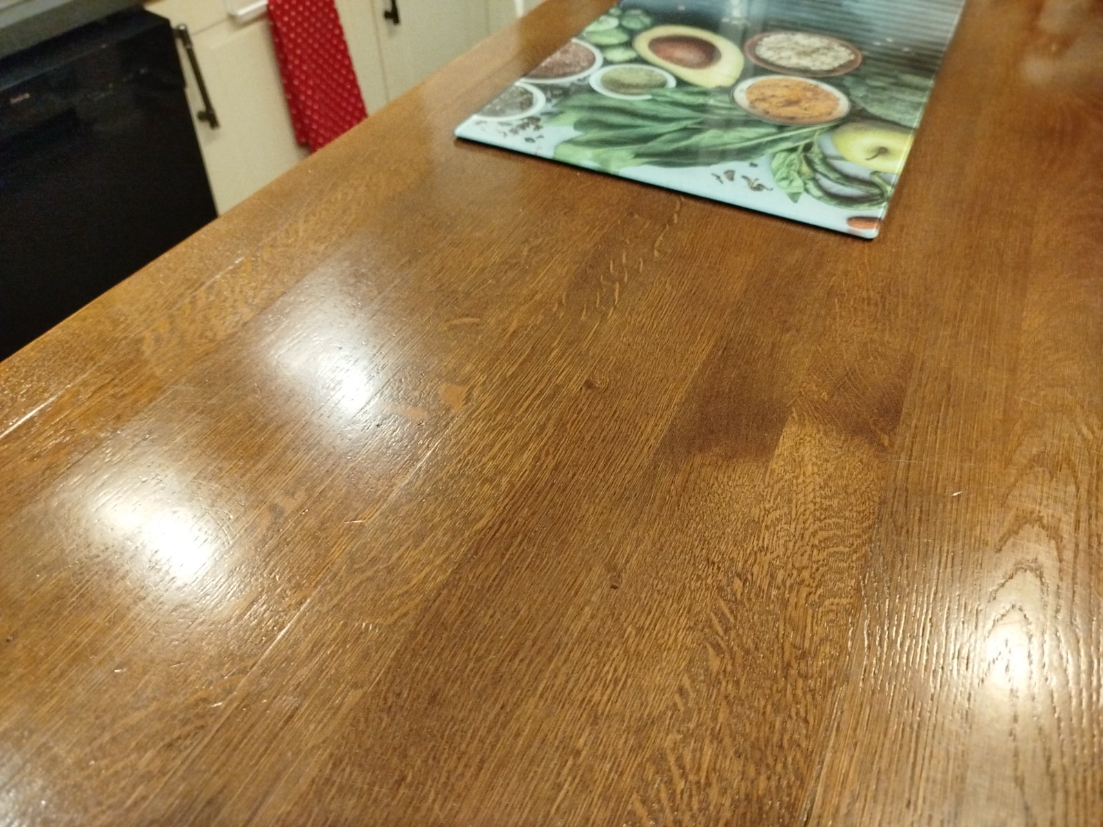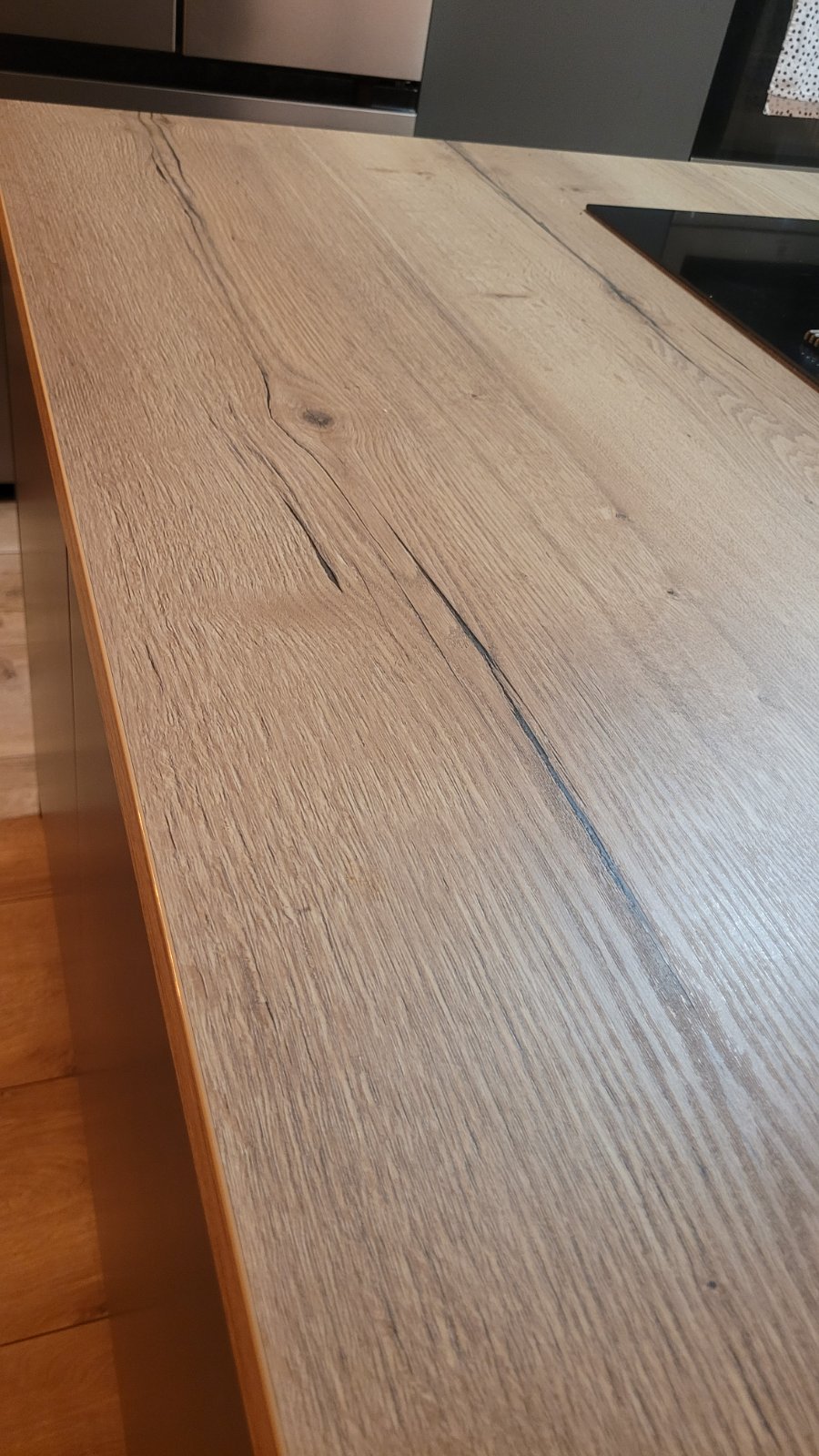 Ja mám,ale iba na ostrovčeku. 6 CM masív a veru si dávam pozor. Priamo na linku,kde je voda,prská s varenia a pod. by som nedala. To, čo si odfotila nevyzerá na skutočné drevo. Ale ak je to priamo od výrobcu pracovná doska,tak je to v poriadku .