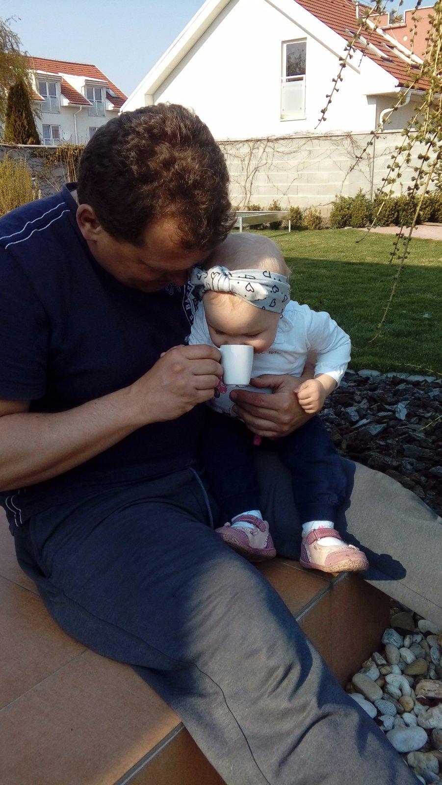 hihi jak u nas 😏 tata kazde rano ked dopije da drobcovi salku a on akoze dopija ponom 👍🏻