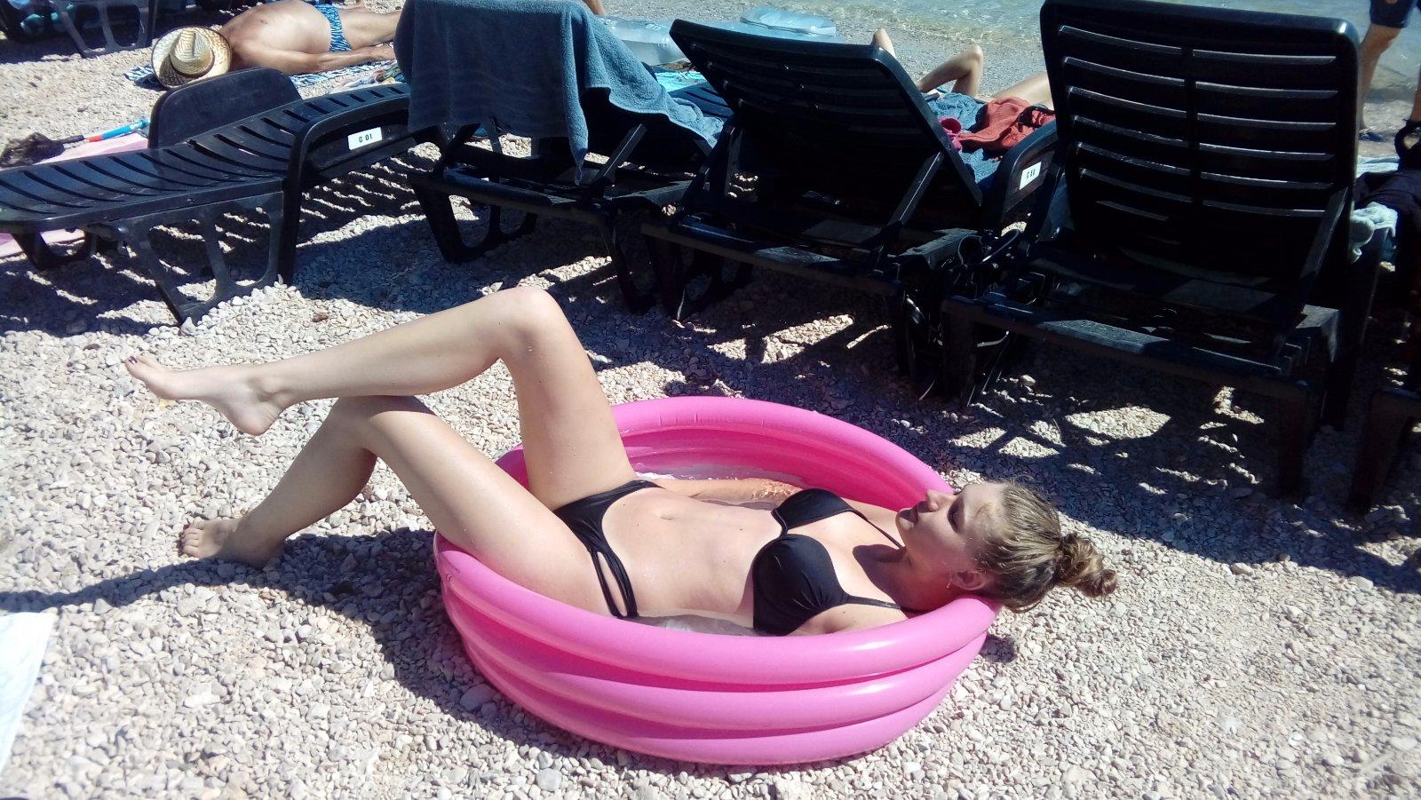 moja starsia okupuje segrin bazenik.. vyhriata tepla voda :D aspon niekto ten bazenik vyuzil, ked mala na neho " prdi" a ide radsej do velkeho bazena :D