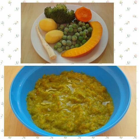 5+ brambory s hokaido, mrvkví, hráškem, brokolicí a petrželí + oliv. olej (oběd)