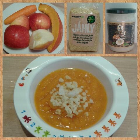 6+ pyré z jablka, mrkve a dýně s trochou pšena a kokosovým olejem (ranajky/desáta) - 1. kokosový olej