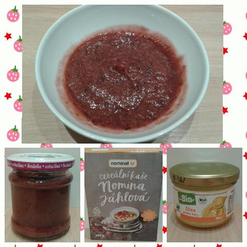 6+ šveskovo - jablková presnídávka s troškou pšenové kaše + ghee (desátá) - 1. švestky