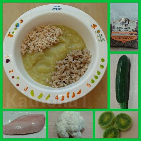 6+ cuketovo-porkovo-kvetáková omáčka s kurecím masem a pohankové testoviny + oliv. olej (obed) 1. cuketa