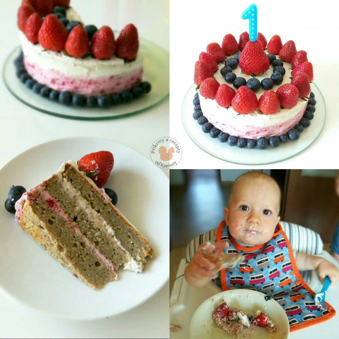 1 ROK - BANÁNOVÝ DORT bez cukru s banánovým a malinovým krémem