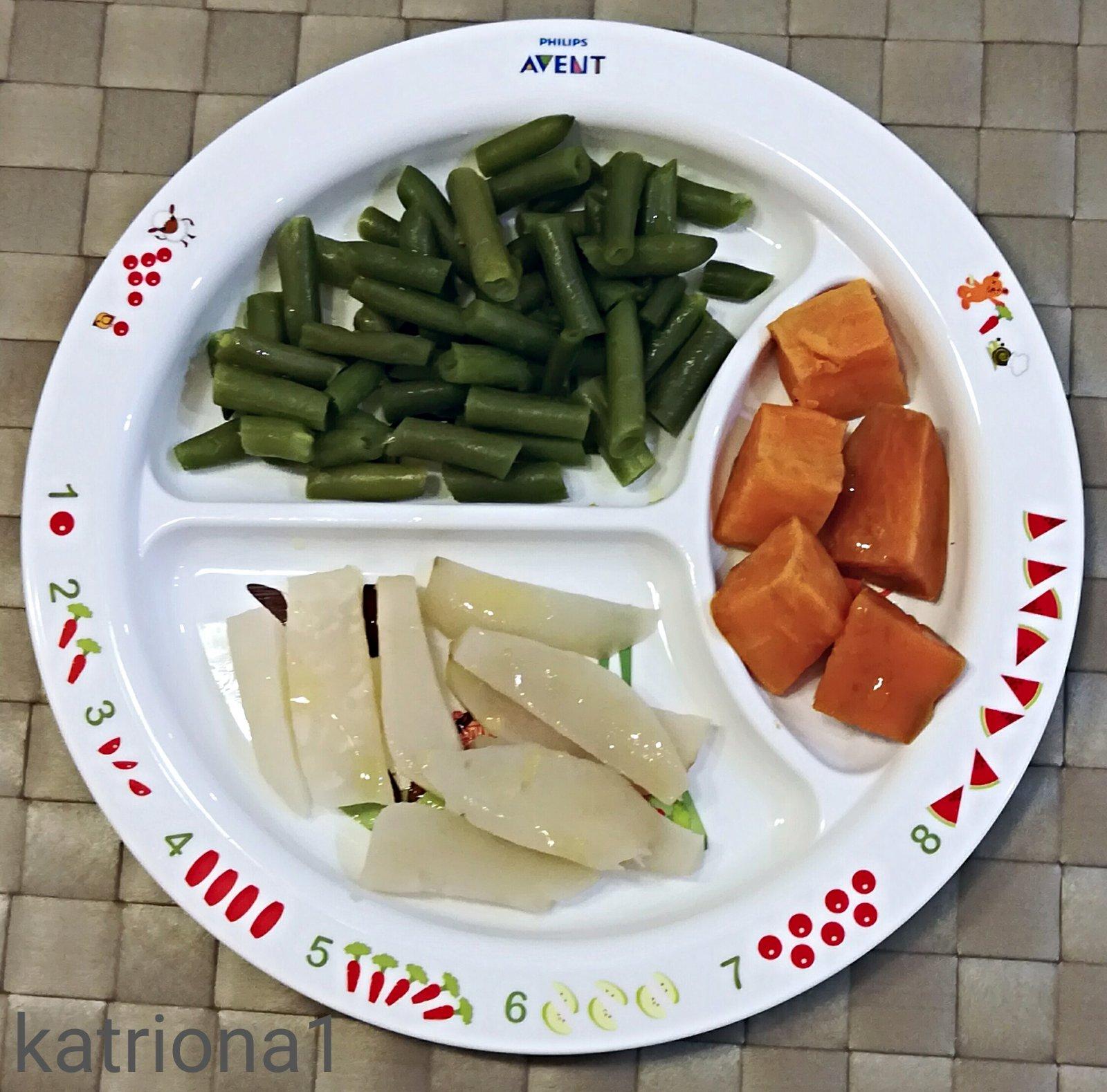 8+ napařený batát, kvaka a fazolky ( v mačkané podobě jsem podávala mnohem dříve )