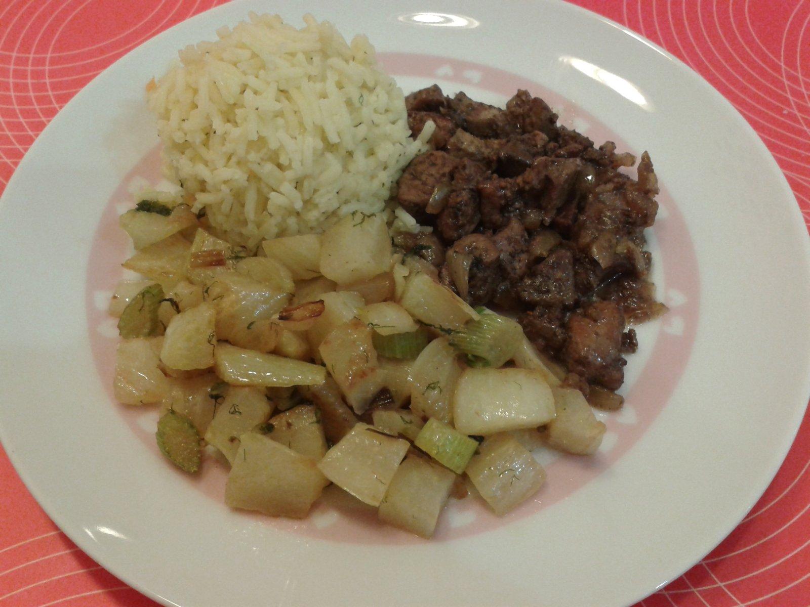 recept:fenykl jsem orestovala s porkem do měkka, pečienky jsem restovala na cibulce s kmínem a majoránkou