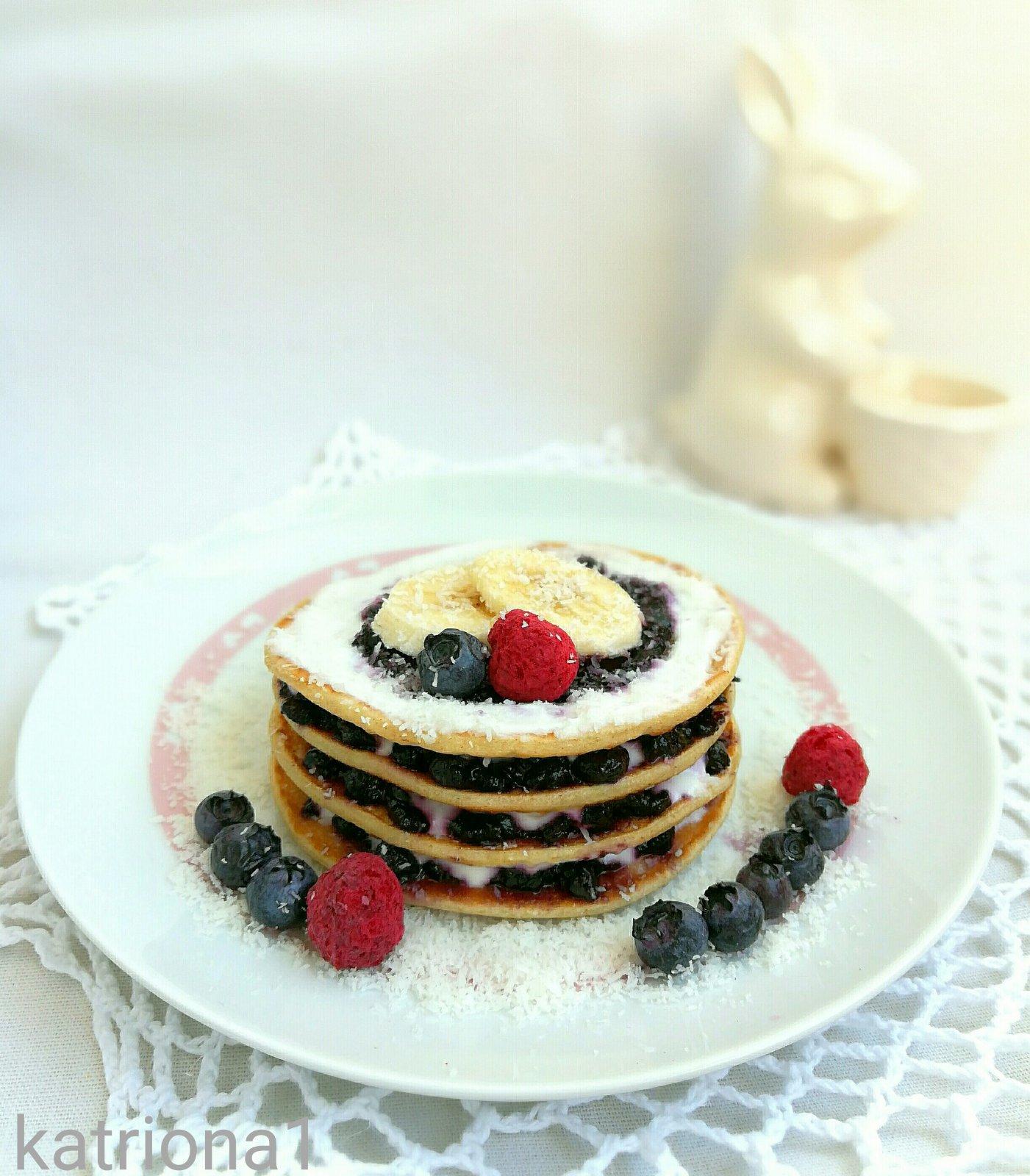 1r.+ kokosovo-špaldové lívance s boruvkami a jogurtem