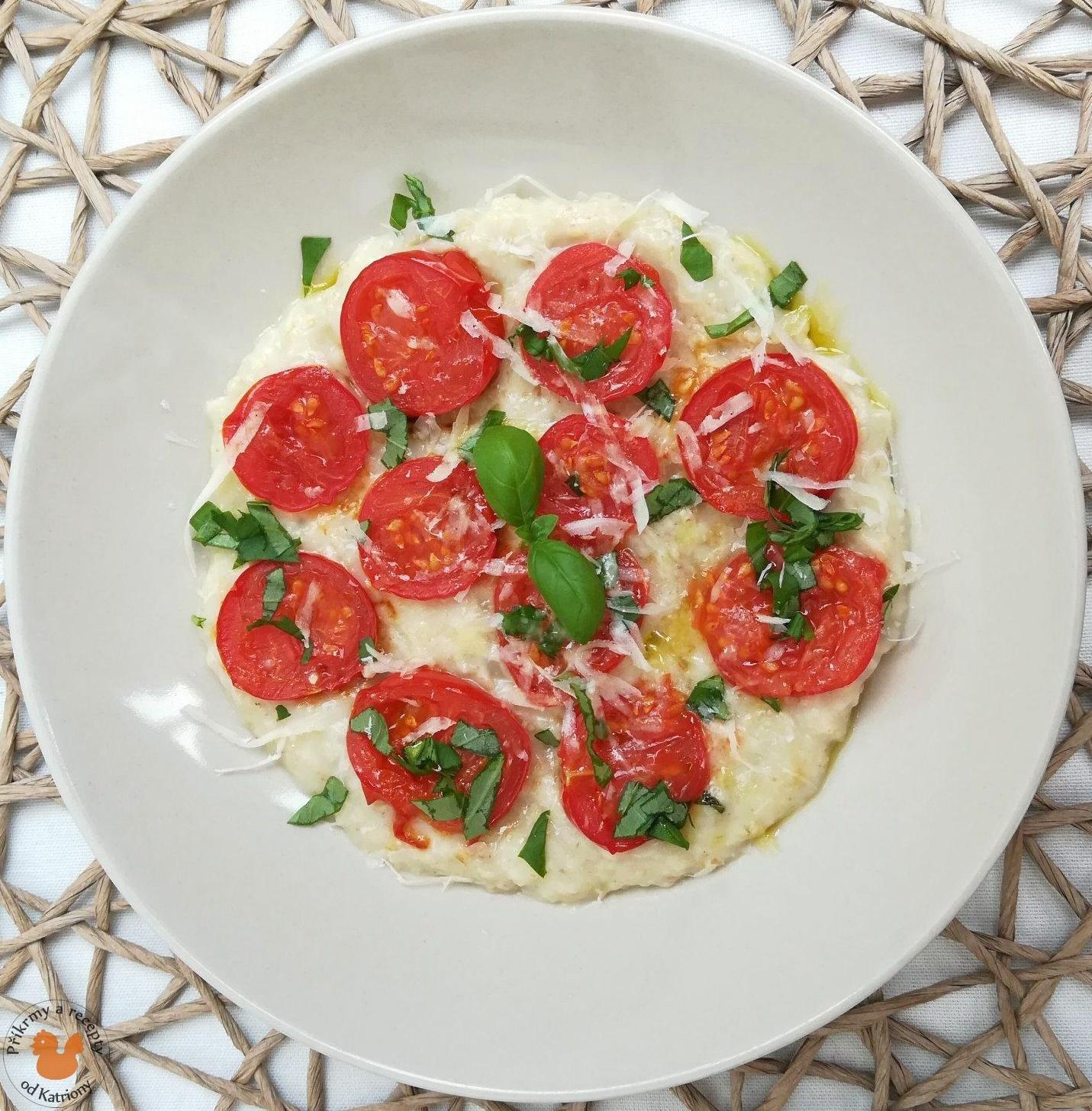 1r.+ Ovesná kaše s rajčaty, bazalkou a parmezánem