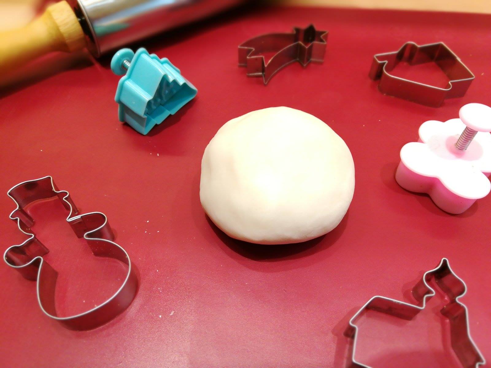 2. Hmotu nechte chvilku zchladnout, ale ještě teplou vyklopte na pracovní desku a spracujte rukami dohladka, potom jí vyválejte na cca 5mm. plát a vykrajujte libovolné tvary.