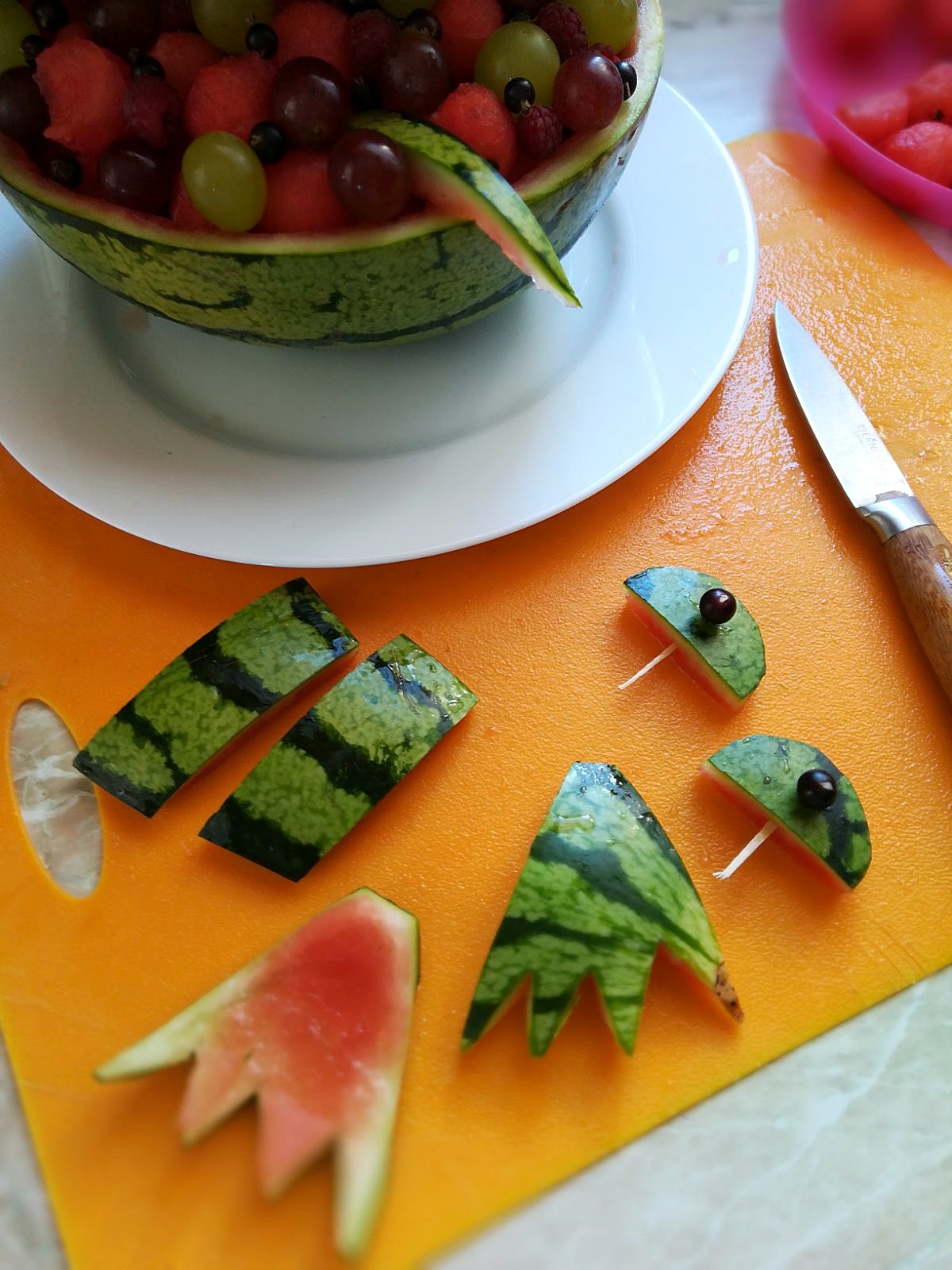autor@iwesska inspirovala jsem se na nete, hodne obrázku je na pintereste, zajímavé nápady si průběžně ukládám nebo potom cíleně před oslavou hledám a ze všeho potom vytvořím něco vlastního, pro chlapce mám v záloze ještě žraloka z melounu, vláček nebo auto, traktor, letadlo a jednou snad udělám i tu velkou lod 🙂