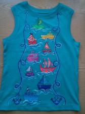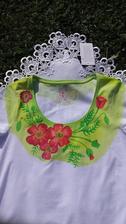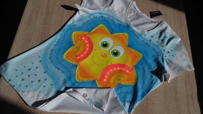 Väčšinu som už darovala rodine a priateľom , ale nie je problém spraviť podobné, či rovnaké.Zostali mi 2 zelené tričká bez rukávov vo veľkosti 110- lietadielka a loďky a to kriklavo ružové body s dievčatkom 🙂