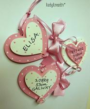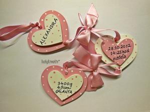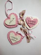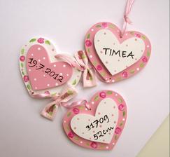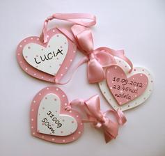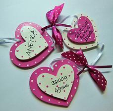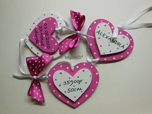 Na srdiečka vám dopíšem ľubovoľné meno, dátum narodenia, váhu.... velkosť srdiečka je 7,5cm, nápis je trvácny, nedá sa zotrieť...