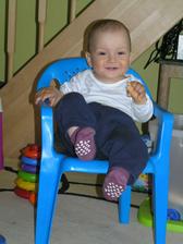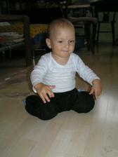 Konečne robíme opäť pokroky. Je to asi dva týždne čo sme začali skúšať státie bez držania, ale Kubko stále padal. Najprv že nevedel držať rovnováhu, zachvíľu mu to však išlo lepšie, potom zas padal, lebo sa jašil. Teraz už sám ustojí, ale len chvíľku a keď sa zabudne, urobí aj krok - dva. Párkrát sa nám podarilo urobiť zopár krôčkov. Veľmi sa z toho tešíme.