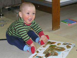 Stále musíme cvičiť vojtovku. Kubko veľa lozí, stavia sa pri nábytku, krásne lezie po schodoch a dokonca sám aj zlieza zo schodov. Ešte nesedíme, aj keď dnes (6.mája - 15 mes./12,5 mes. korigov.veku) po prvý krát sedel na zemi bez pádu, dokonca sa sám dal z tejto polohy na štyri. Veľký úspech, keďže doteraz vždy spadol nabok.