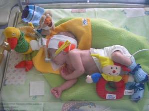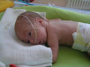 (19.3.2009) Zajtra ma Kubik 2 mesiace. Prekonal uz 2 infekcie a ma 2 kila. Este je v nemocnici, ale uz konecne dycha bez pristrojov a dokonca uz nie je par dni ani v inkubatore. Lezka v postielke, uz ma aj dupacky a perinku. Bohovsky sa mu to paci.