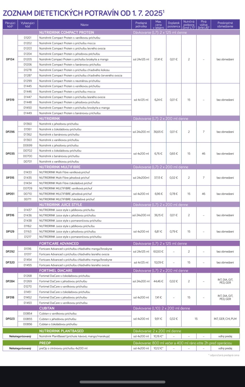Tam je prehľad zo značky nutricia - nutridrink. Sú aj iné značky rozdiely nepoznám úplne. Tu sú aj kódy všetky. Aj mesačný limit na predpísanie aj info o tom kto môže predpísať.