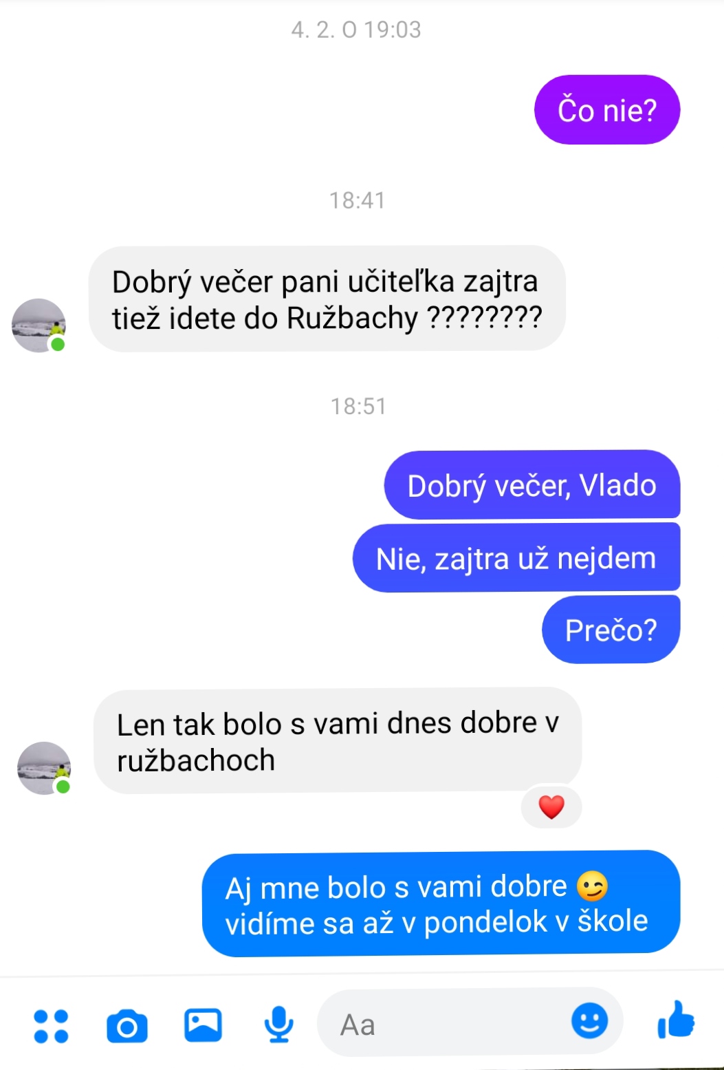 Dnes som bola prvýkrát v lyžiarskom stredisku, nie lyžovať (to nie je nič pre mňa), ale robiť dozor na lyžiarskom výcviku. A teda, vôbec sa mi tam nechcelo, ale trošku som chytala vitamín D a večer sa mi srdce roztopilo, keď mi cinkla správa od jedného z mojich žiakov 😇😊💙❤️