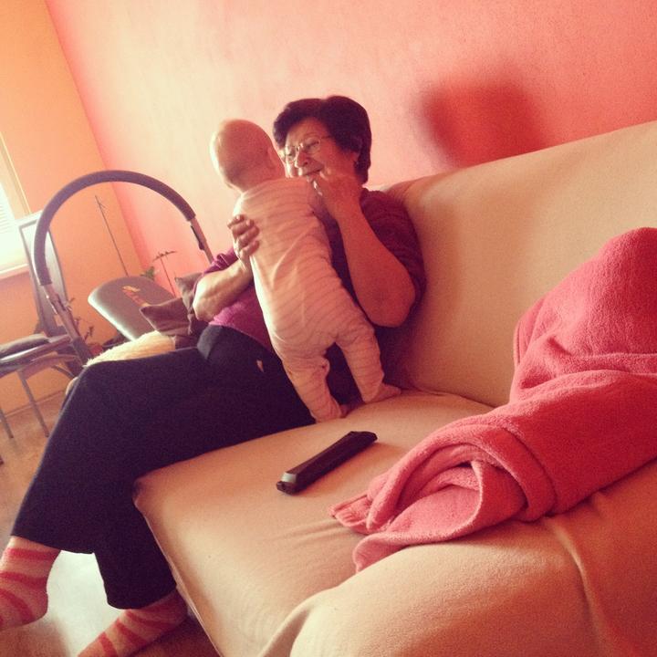 S prastarkou 😍 ..včera sme mimochodom zistili, že sa vieme postaviť, takže sedieť, alebo ležať sa nam momentalne nechce, ale vóbec 😂
