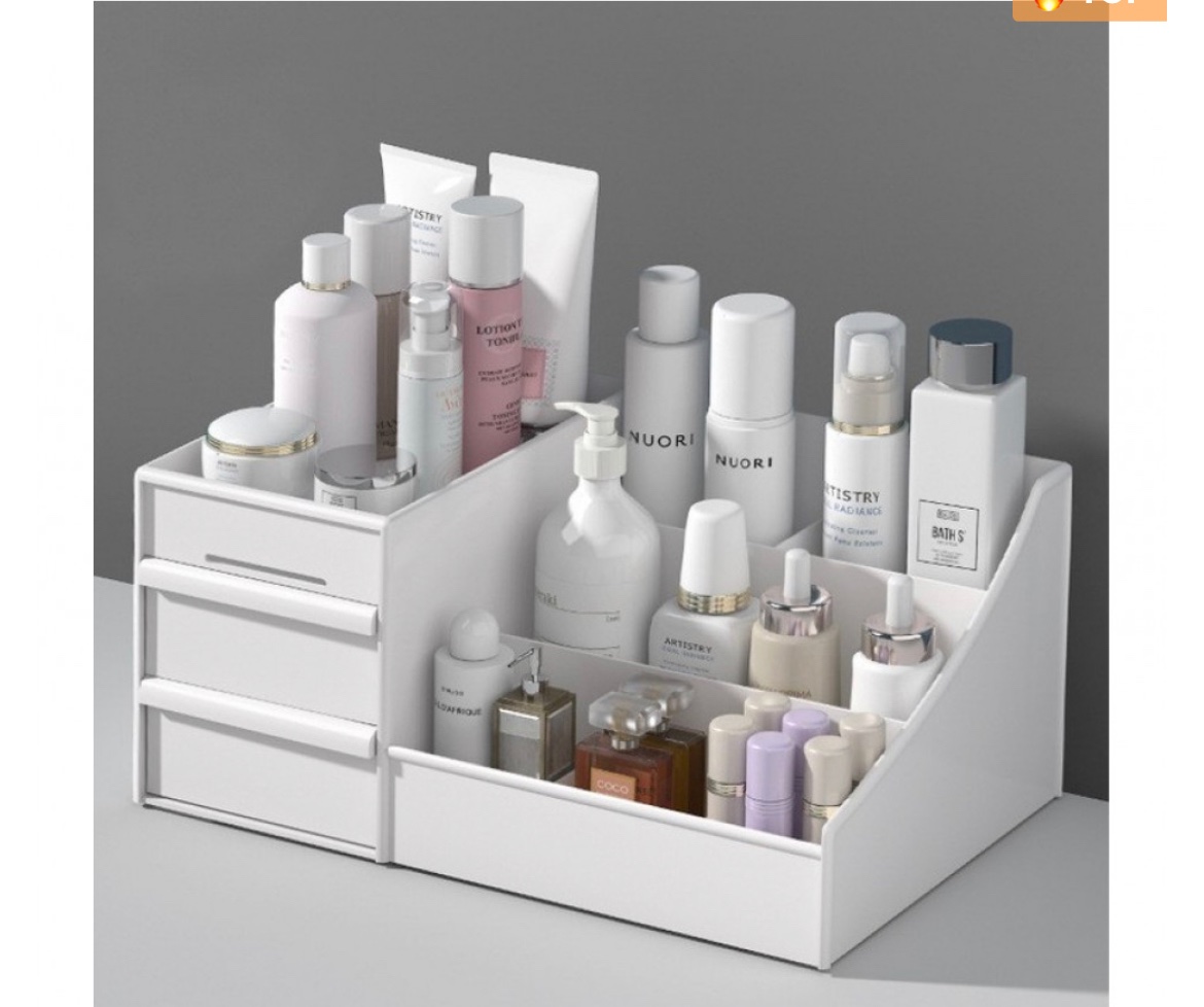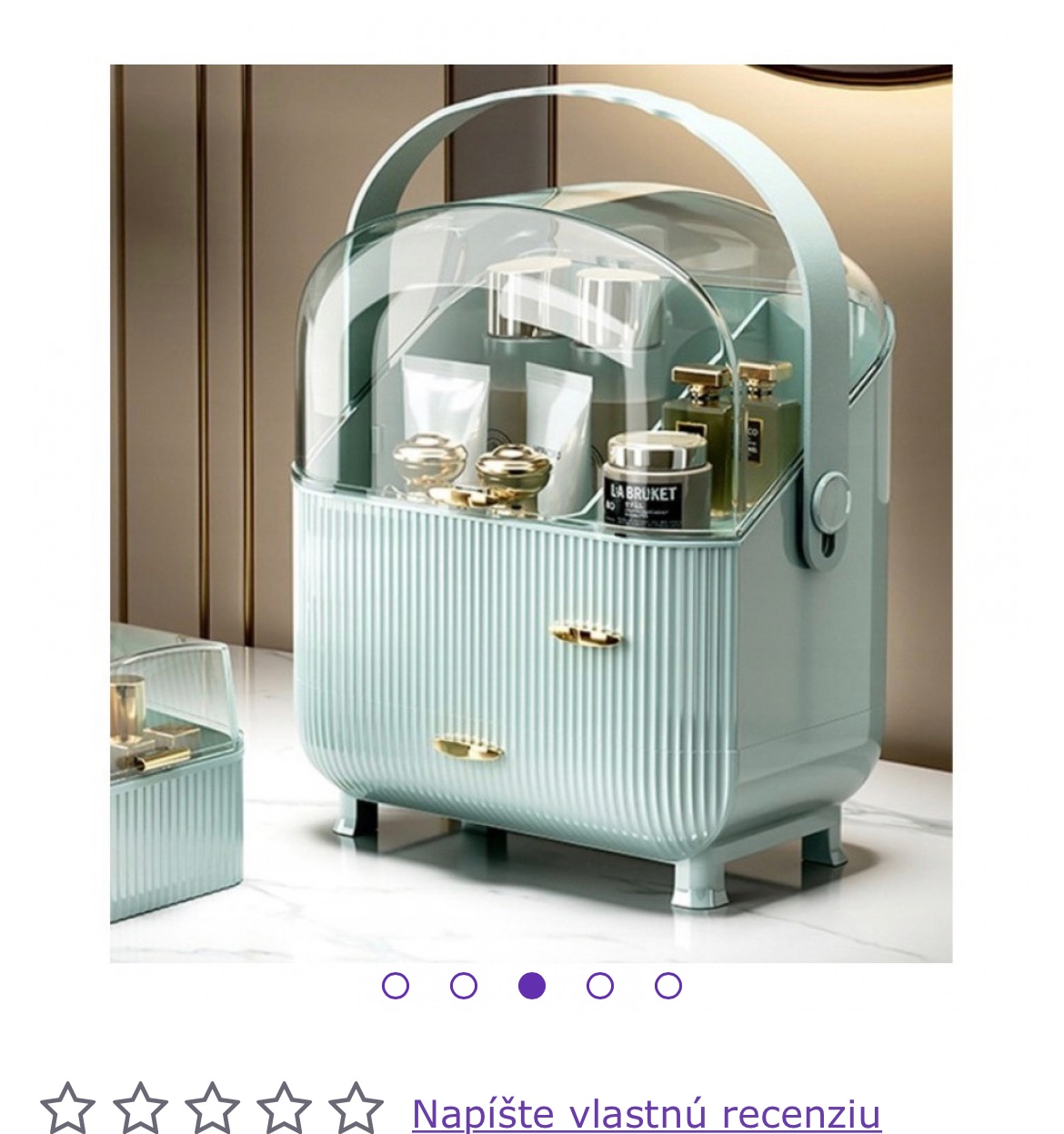 Kozmetický organizér by mohol pomoct. Akurat aj ja nieco hladam, ale ja by som potrebovala nieco uzatvárateľné a prenosné. Lampu samozrejme do nejakej vyčlenenej skrinky. Ja taku mam, kvoli mycke sme ju vyberali.