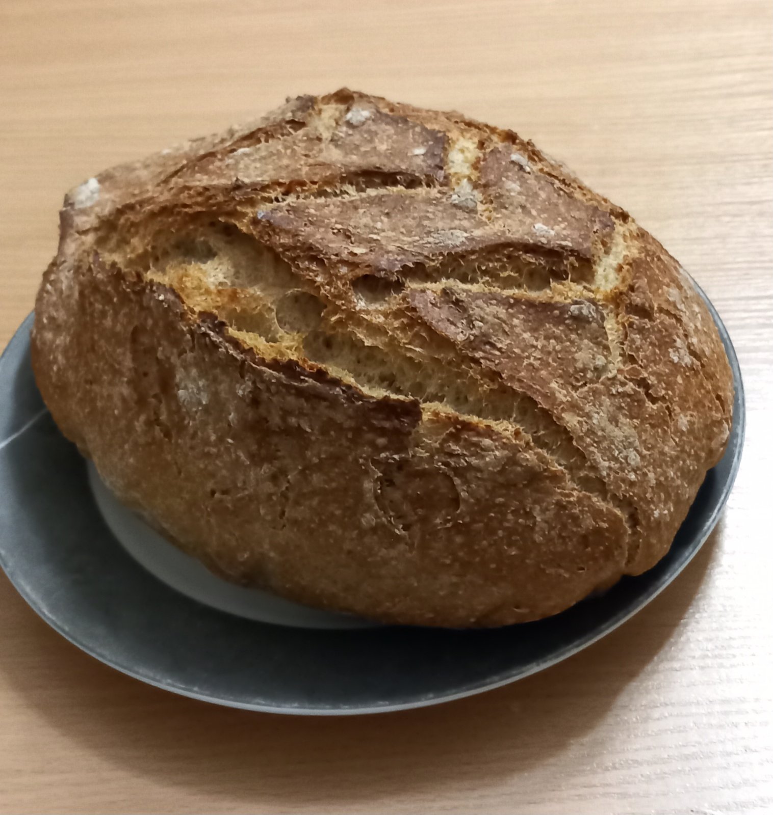 @kkaciatko 3 salky muky( ja davam 2 hladkej a 2 raznu celozrnnu) 1,5 salky teplej vody, 2 lyzicky soli, 1 lyzicka cukru, 1 lyžička suseneho drozdia, trochu rasce a podla chuti semienka, otruby, vločky a pod... echat vykydnut 4-6 hodin, ale staci aj menej... urobit bochnik....vyhriat ruru aj s nadobou na pecenie na 240 stupnov, vlozit chlieb, zakryť s piect 30 minút...potom odokryt a piect este 20 minut na 210 stupnov