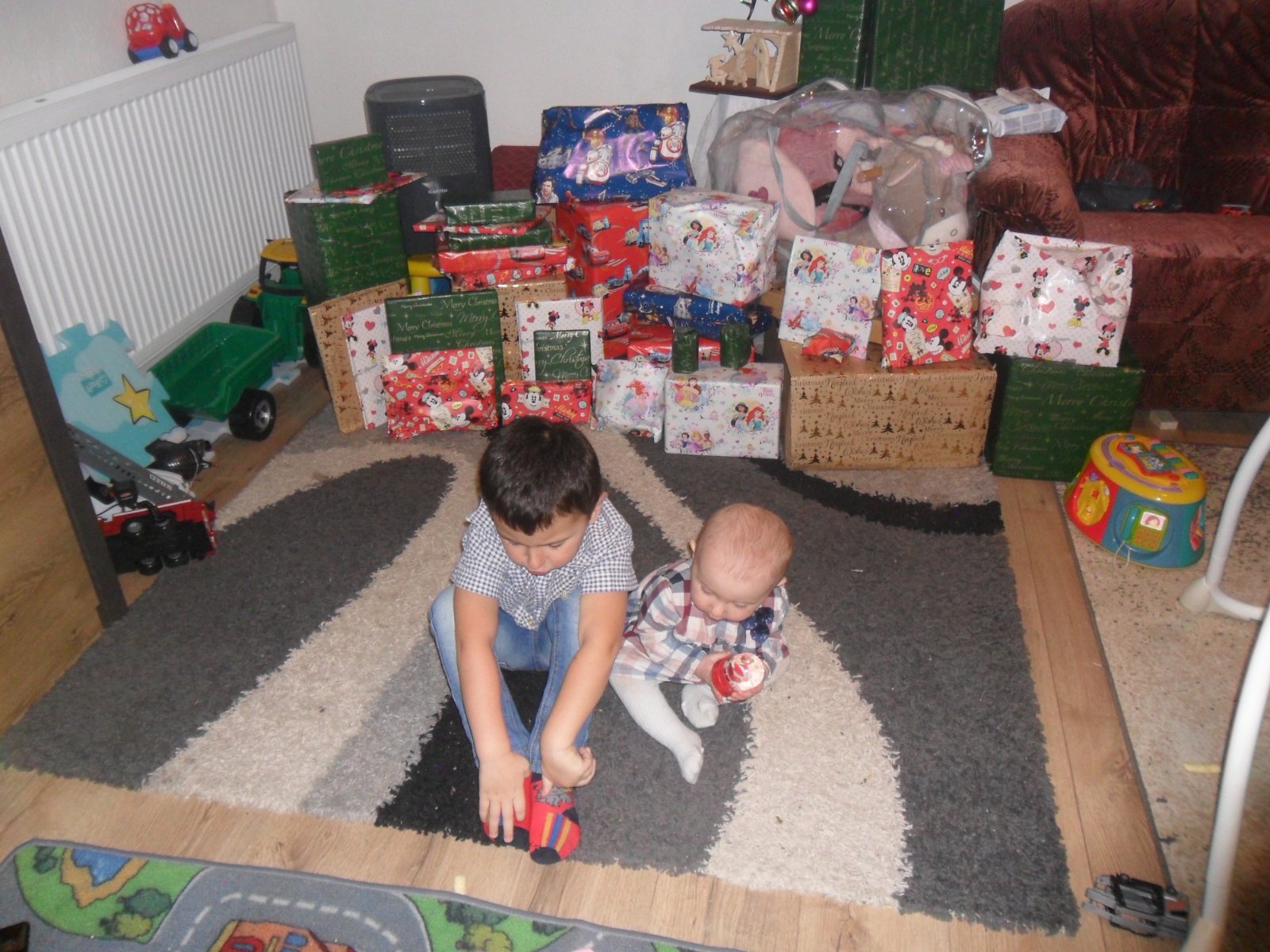 Minuly rok mali vela, vzdy nieco na hranie, nieco potrebne(plienky, oblecenie...), nieco spolocne, vela kniziek. Dcerka mala prve vianoce, nemohli sme byt s muzom, tak sme im chceli dopriat. Ale tieto vianoce obaja dostanu po dalsej knizke kuzelne citanie, po nejakej hracke a oblecenie a radsej im dorobime vonku ihrisko na jar. Syn ma narodeniny 22.12.