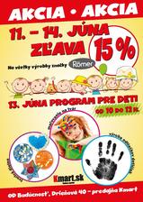 Už túto sobotu 13.6.2015 sa uskutoční PROGRAM PRE DETI spojený s AKCIOU - 15% ZĽAVA na všetky výrobky zn. Romer v čase od 10 hod. do 12 hod. v predajni Kmart v OD Budúčnosť na Drieňovej ul.č. 40 v Bratislave.