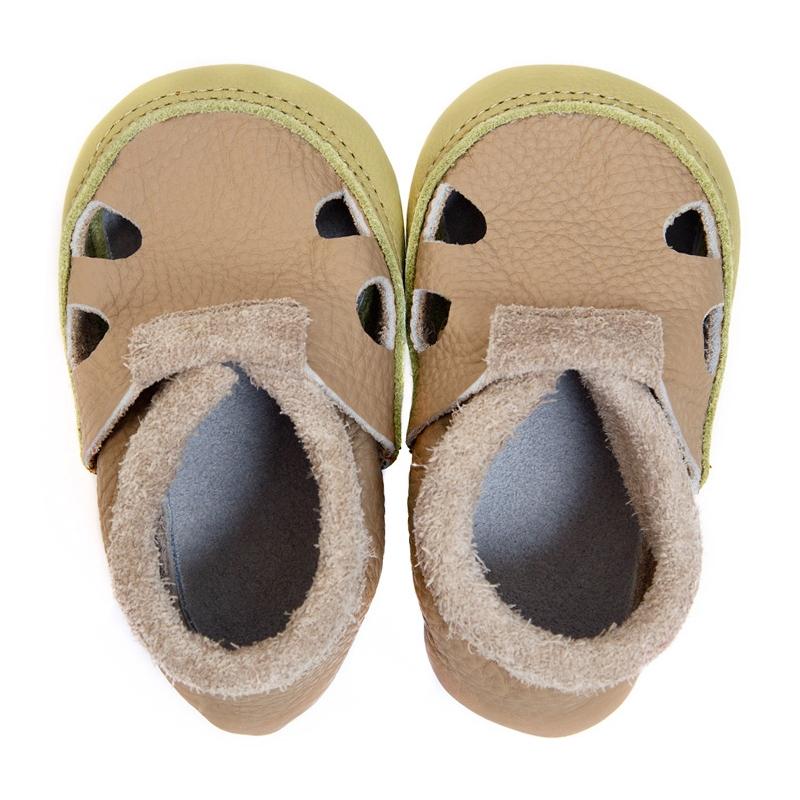 Tikki Shoes - kožené capačky multicolor - Cappuccino & lime