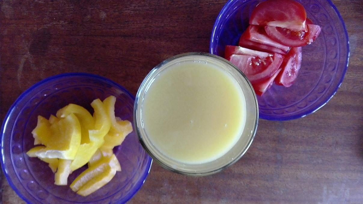 zdravý olovrant :) Paradajka, paprika, pomarančová šťava