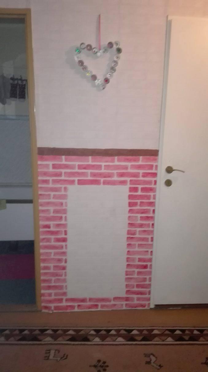 Keď si vymyslíte, že chcete v byte kozub, aby bolo kam zavesiť ponožky. A Váš chlap pre Vás bude aj vymaľovávať tapetu pre to. P.S. Do stredu ešte pôjde fototapeta ohníka.